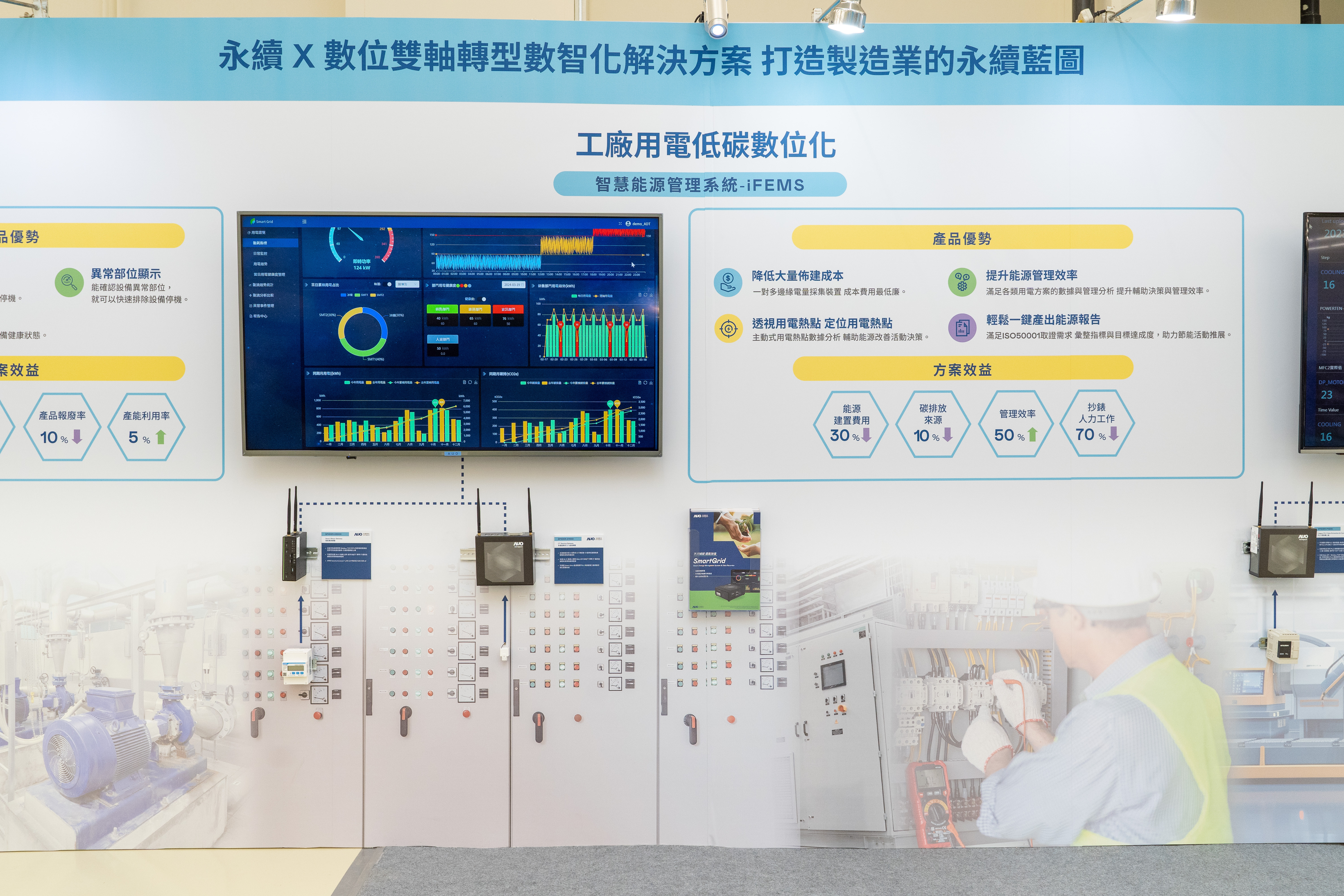 為因應碳規範日趨嚴格,以及碳資產時代來臨,友達號召15家生態圈上下游供應鏈夥伴,以建置AI智能化減碳/節能管理數位化平台為主要項目,執行種子示範案例。